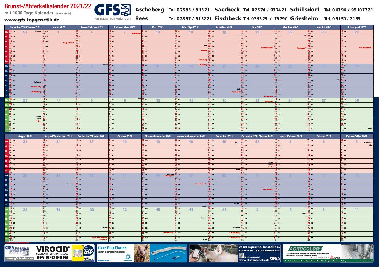 Pünktlich zum Jahresende erscheint der Brunst- und Abferkelkalender 2021/2022 der GFS.