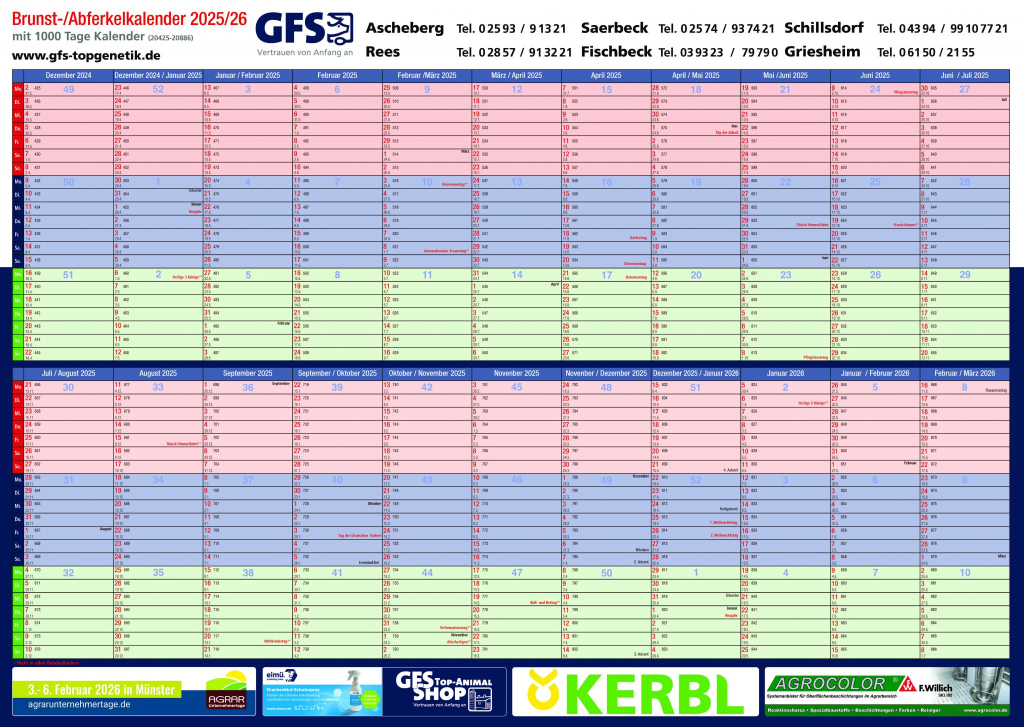 Der neue Brunst- und Abferkelkalender 2025 der GFS ist wieder erhältlich!