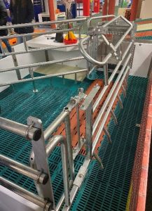 Nachmittags ging es weiter zu dem Lehr- und Versuchszentrum Futterkamp. Dort stellte Christian Meyer, Berater der Landwirtschaftskammer Schleswig Holstein/ Versuchsgut Futterkamp, zukünftige Entwicklungen im Bereich der Abferkelbucht und der Deckzentren vor. Für das Deckzentrum gilt, dass die Gruppenhaltung im Deckstall berücksichtigt wird und die Sau nur noch zur Behandlung oder Belegung fixiert werden darf. Bei der Planung von Abferkelbuchten muss nun bedacht werden, dass die Sauen zukünftig in Bewegungsbuchten mit mehr Platz gehalten werden müssen. Eine sinnvolle Strukturierung der Bucht sollte beachtet werden. Durch einen Rundgang in der Bau- und Lehrschau des Versuchszentrums konnten verschiedene Bewegungsbuchten von mehreren Firmen anschaulich dargestellt werden. Abends wurden die gesammelten Eindrücke bei einem Abendessen in persönlichen Gesprächen ausgetauscht und diskutiert.